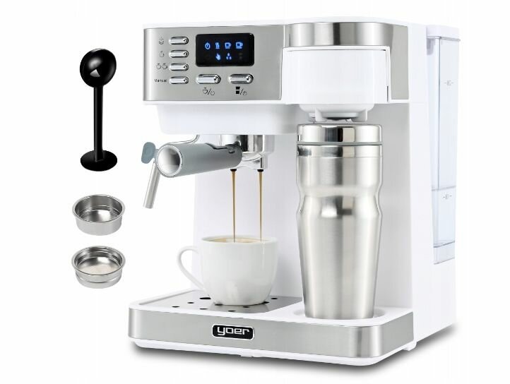Купить Кофемашина рожковая Yoer Dualio 850 Вт, серебристый/белый с доставкой по всей России. Кофемашина рожковая Yoer Dualio 850 Вт, серебристый/белый: сравнение цен, характеристики, фото, актуальное наличие и цены.