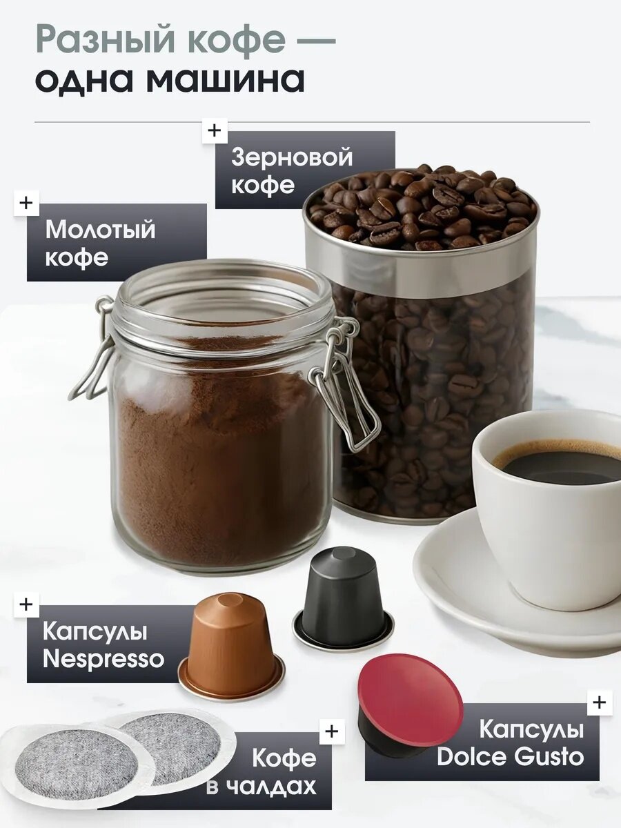 | Тип капсул | Lavazza, Lavazza BLUE, Lavazza LEP, Lespresso, Nespresso Original, Nespresso Professional, Paulig Cupsolo, Polti, Smart Coffee Club Livorno |