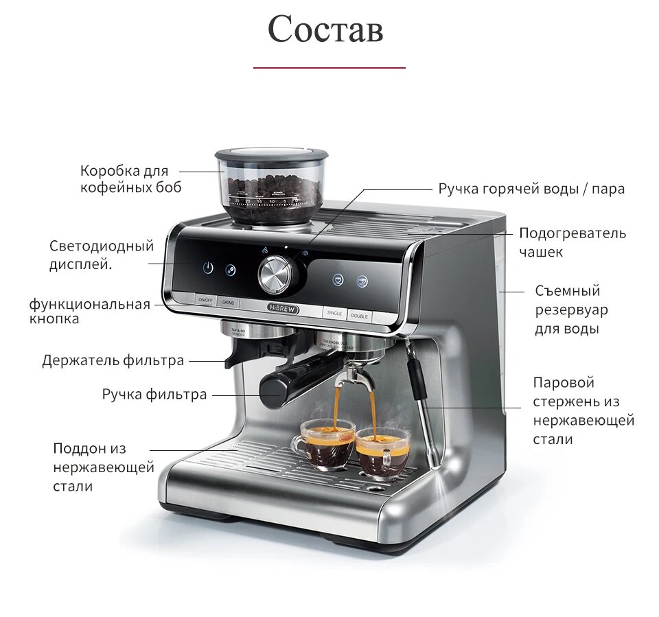 Кофемашина Xiaomi Hibrew CM5020 H7, 20 Бар, Серебристая, Автоматическая, С Капучинатором: сравнение цен, характеристики, фото, актуальное наличие и цены.