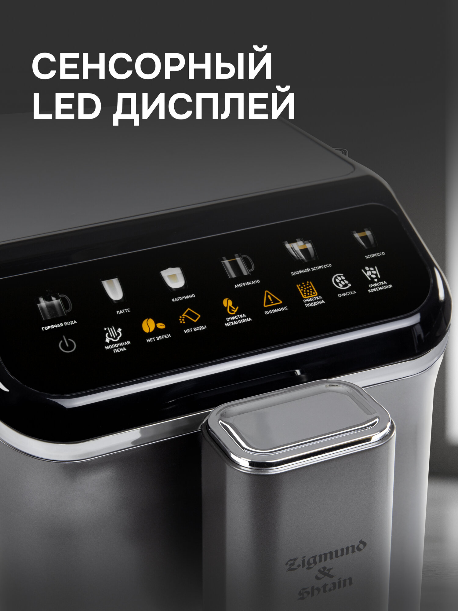 Кофемашина Zigmund & Shtain ZACM-2000, автоматическая, 1350 Вт, серый металлик: сравнение цен, характеристики, фото, актуальное наличие и цены.