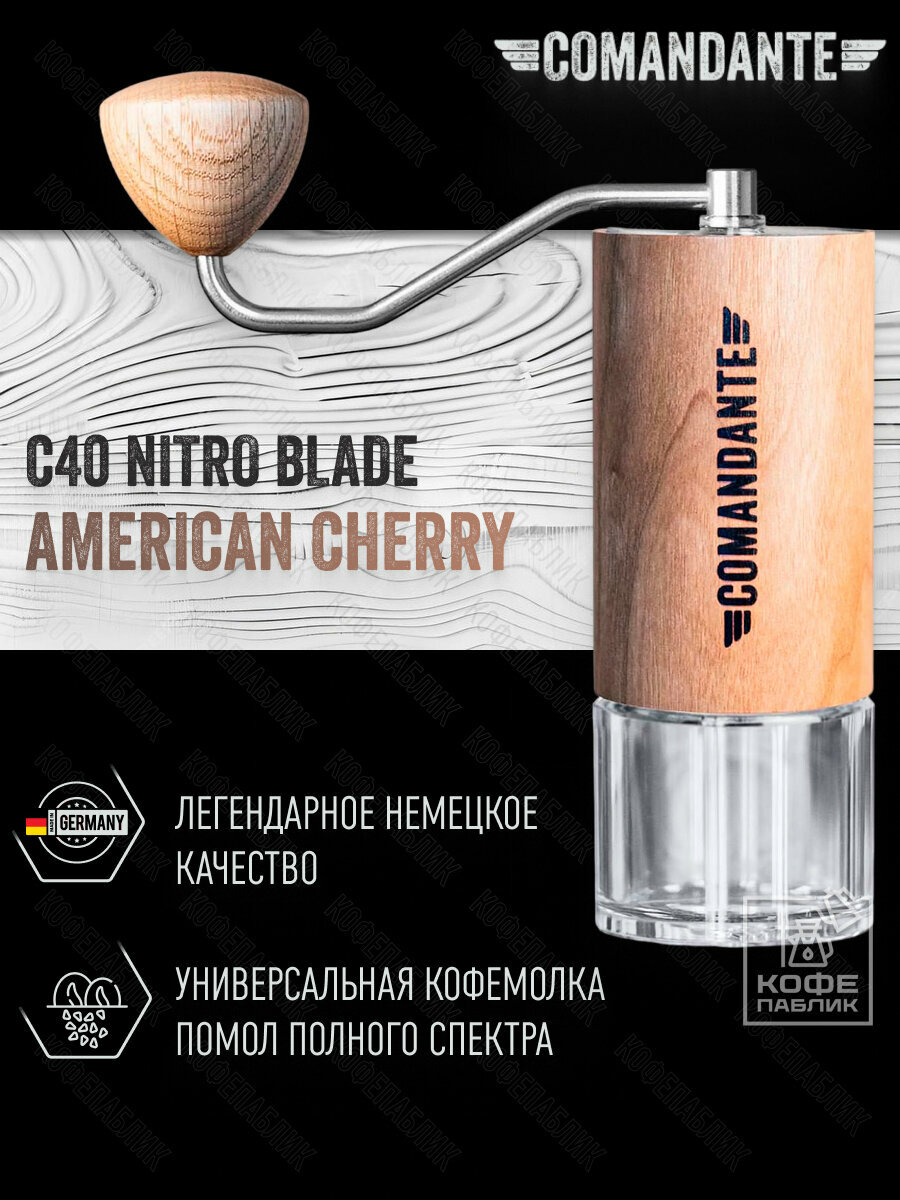 Ручная кофемолка Comandante C40 NITRO BLADE American Cherry, с точной регулировкой помола: сравнение цен, характеристики, фото, актуальное наличие и цены.