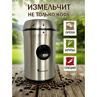 Любите наслаждаться по утрам ароматным кофе? Тогда электрическая кофемолка из нержавеющий стали просто необходимый кухонный помощник в вашем доме. Практичная электрокофемолка мощностью целых 600 Вт имеет контейнер для перемалывания 150 грамм кофейных зерен. Также электрическая мельница с легкостью измельчит орехи, специи, крупы для детского питания и любые зерна.
