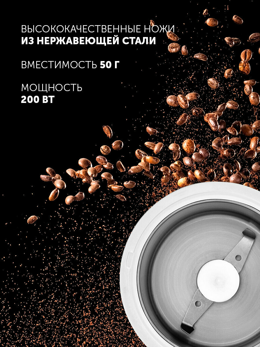 Кофемолка электрическая Polaris PCG 2014 с импульсным режимом работы, белый: сравнение цен, характеристики, фото, актуальное наличие и цены.