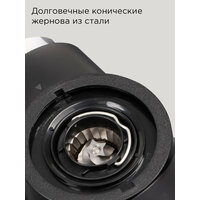 Стальные конические жернова обеспечивают равномерное измельчение зерен. Вкус готового напитка получается выразительным и сбалансированным. CG806 позволит вам оценить все особенности выбранного сорта кофе.