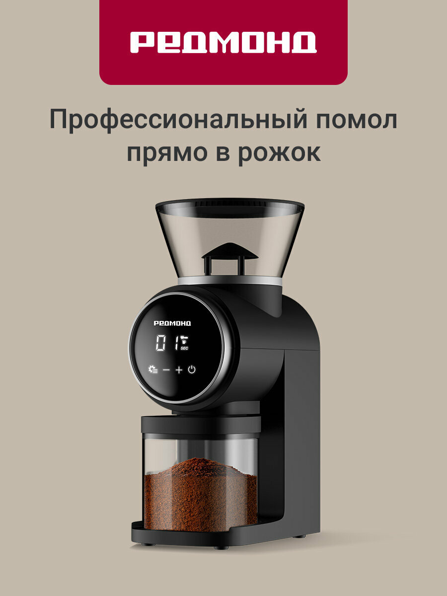 Кофемолка редмонд CG806 со стальными коническими жерновами и сенсорным управлением позволяет легко получить идеально измельченные зерна для насыщенного и ароматного кофе. 30 степеней помола и возможность регулировать объем порции помогут сделать напиток по своему вкусу.