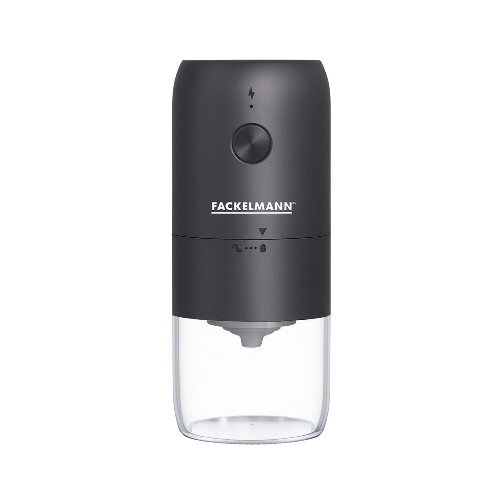 Кофемолка электрическая с USB FACKELMANN Черный Дракон, кабель Type-C, умная, автоматическая остановка после помола, режим зарядки, регулировка степени помола, беспроводная
