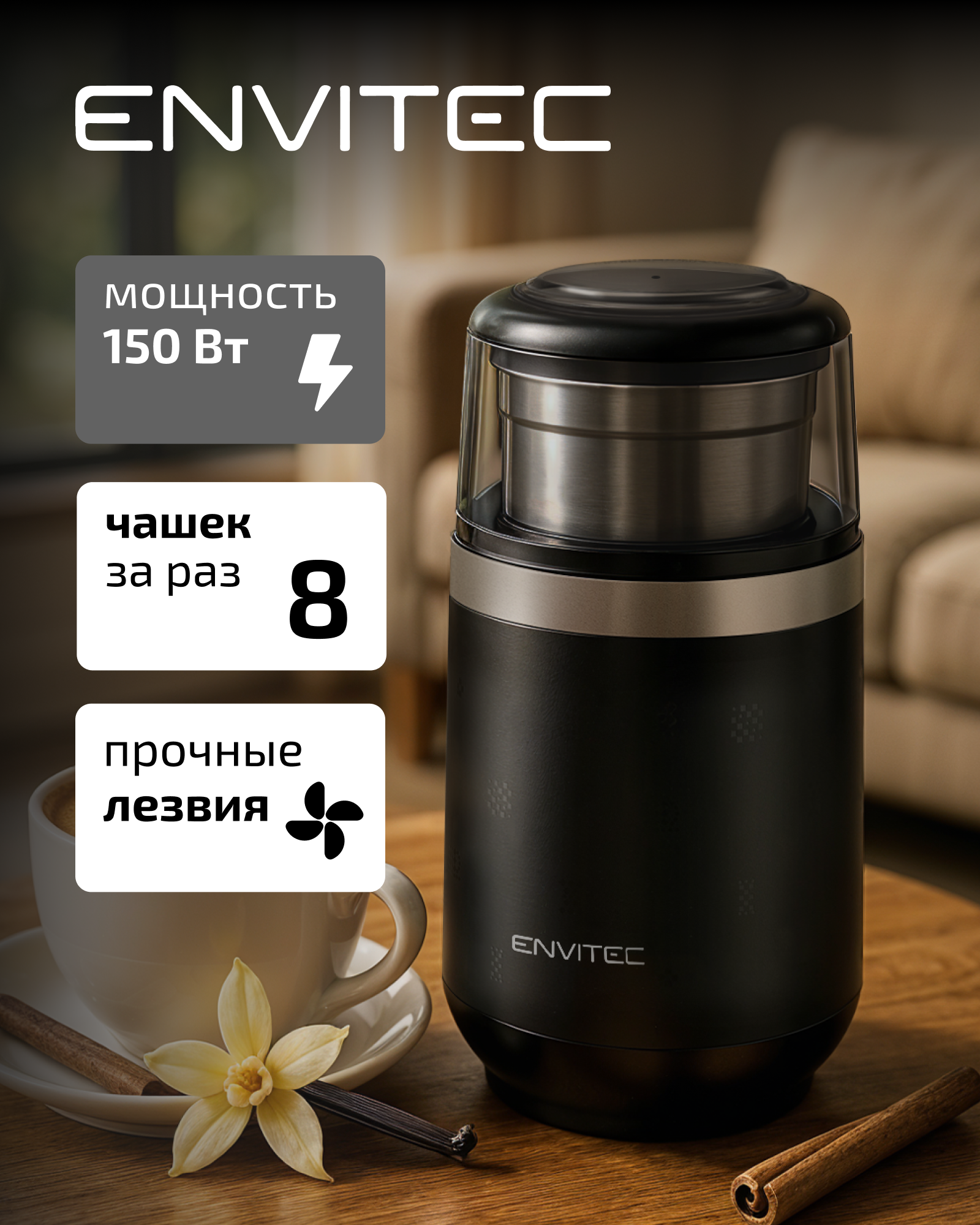 Кофемолка Envitec C-Mill Midi S15, ротационный нож, мощность 150 Вт, вместимость 70 г: сравнение цен, характеристики, фото, актуальное наличие и цены.