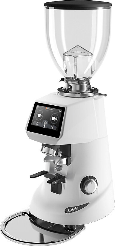 Fiorenzato F64 E – профессиональная кофемолка прямого помола, используемая в кофейнях, барах и ресторанах для получения молотого кофе. Модель оснащена эксклюзивным цветным сенсорным дисплеем (новая модель), микрометрической регулировкой помола, автоматической дозировкой и необнуляемым счетчиком порций.