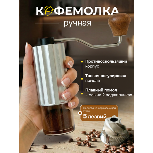 Кофемолка ручная жерновая с выбором степени помола, серебристая - это незаменимый аксессуар для истинных ценителей ароматного кофе. Она позволяет получить идеально помолотый кофе, который сохранит все свои вкусовые качества.