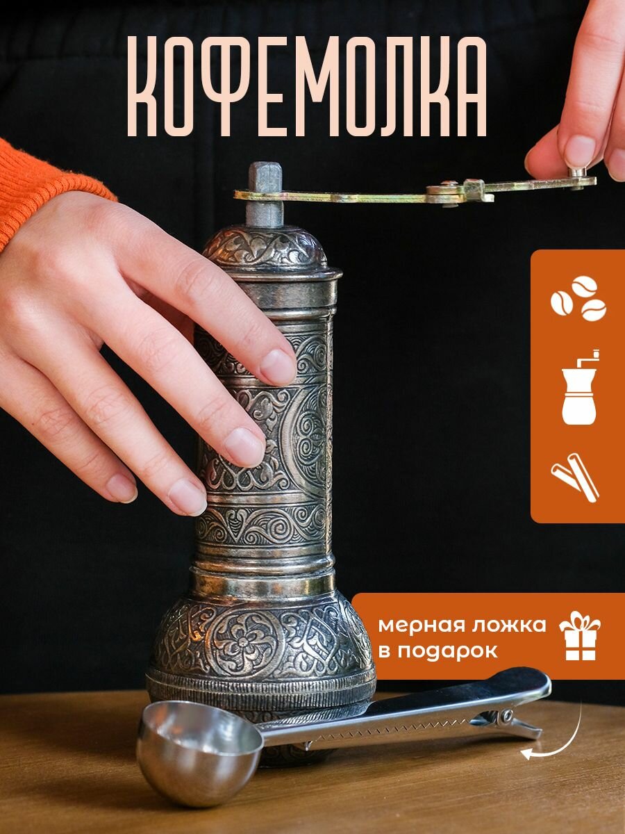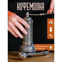 Кофемолка ручная с ложкой для кофе металлическая турецкая ( мельница для специй, пряностей, зерен серебряная ): сравнение цен, характеристики, фото, актуальное наличие и цены.