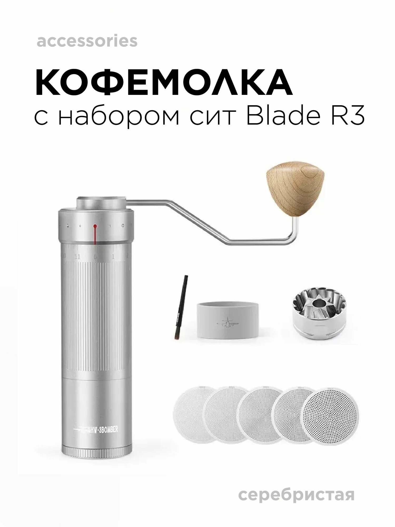 Купить Кофемолка ручная с набором сит для просеивания кофе Blade R3 серебристая с доставкой по всей России. Кофемолка ручная с набором сит для просеивания кофе Blade R3 серебристая: сравнение цен, характеристики, фото, актуальное наличие и цены.