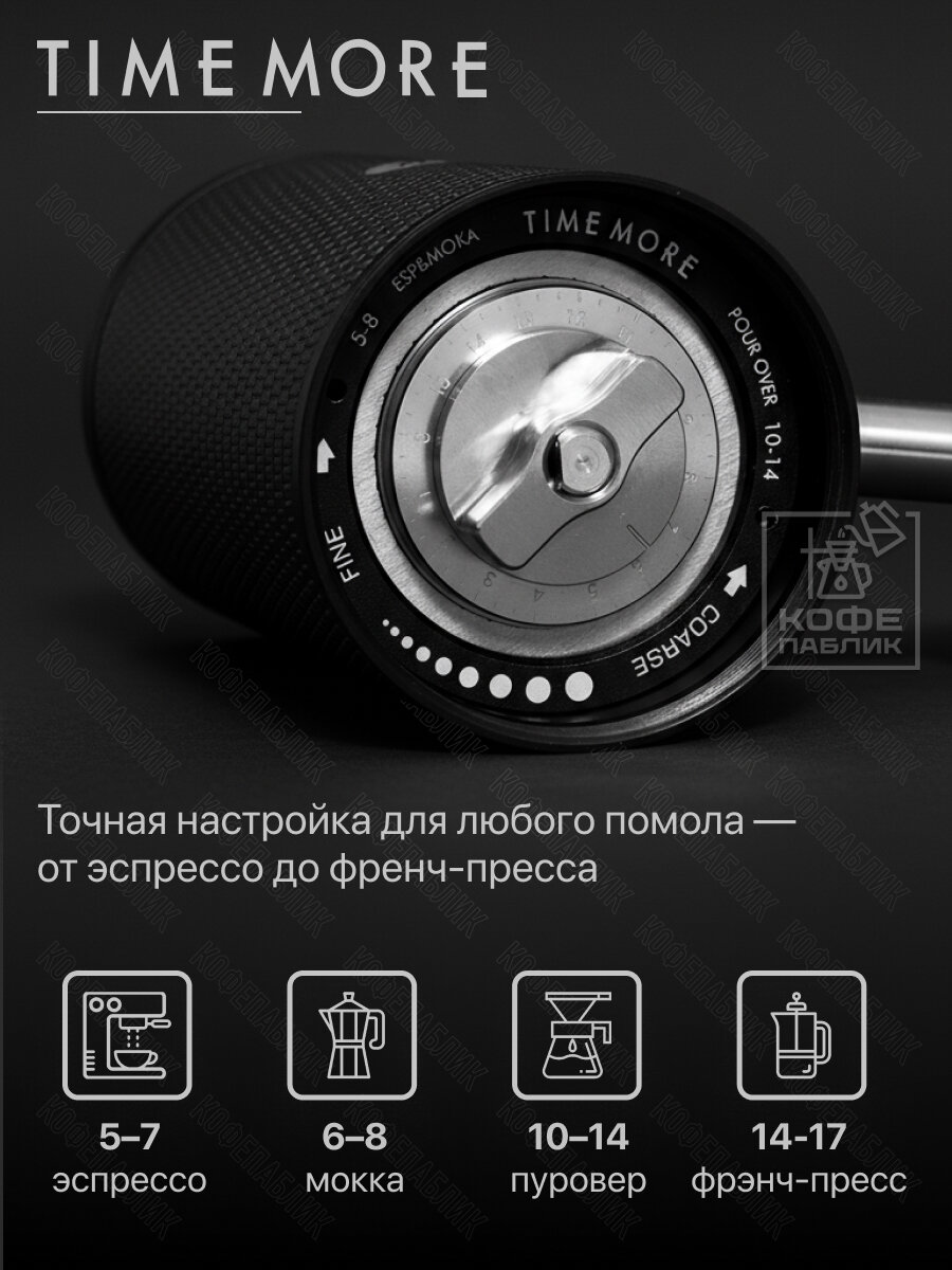 Купить Кофемолка ручная жерновая Timemore C5 Pro Black — жернова 42 мм S2C-042-III, 48 кликов, 70TGD030AA101 с доставкой по всей России. Кофемолка ручная жерновая Timemore C5 Pro Black — жернова 42 мм S2C-042-III, 48 кликов, 70TGD030AA101: сравнение цен, характеристики, фото, актуальное наличие и цены.