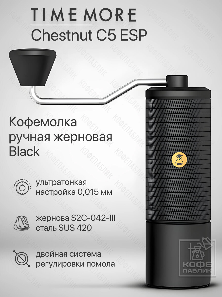 Купить Кофемолка ручная жерновая Timemore Chestnut C5 ESP (Black), чёрная с доставкой по всей России. Кофемолка ручная жерновая Timemore Chestnut C5 ESP (Black), чёрная: сравнение цен, характеристики, фото, актуальное наличие и цены.