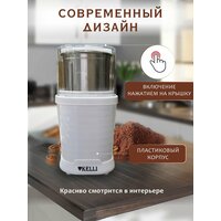Купить Кофемолка техно-вилка KELLI электрическая, со съемной чашей, 500 Вт, от сети, белый с доставкой по всей России.