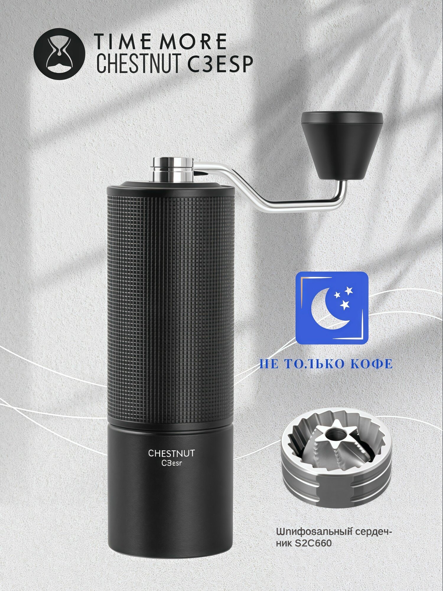 Купить Кофемолка Timemore Chestnut, ручная, жернова ESP+S2C, черная, 600г с доставкой по всей России. Кофемолка Timemore Chestnut, ручная, жернова ESP+S2C, черная, 600г: сравнение цен, характеристики, фото, актуальное наличие и цены.