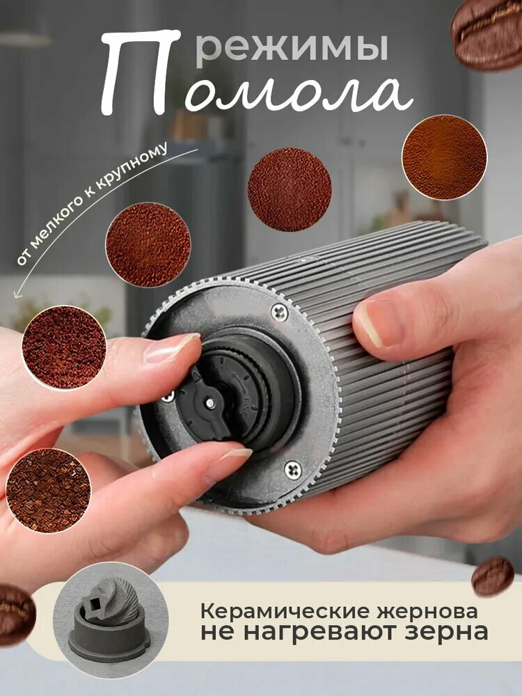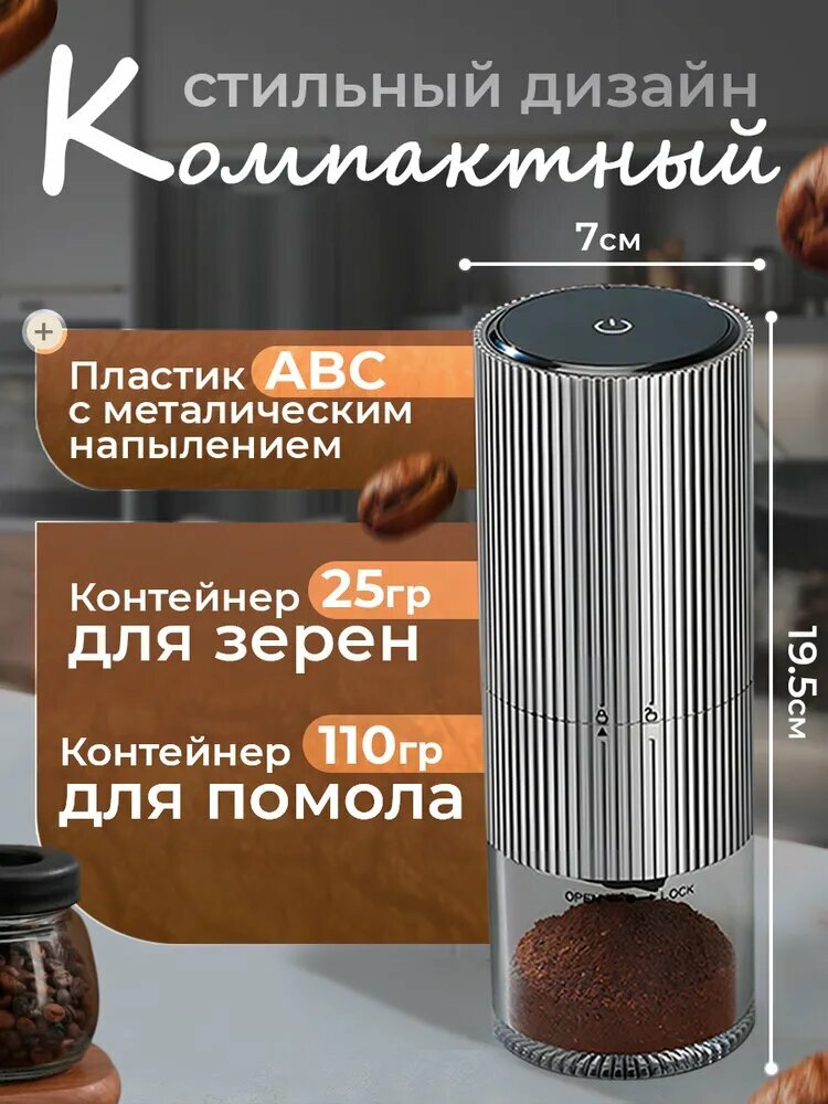 Кофемолка жерновая, электрическая, портативная, со съемной чашей