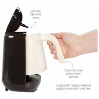 Кофеварка для кофе по-турецки TC0250 Oursson – отличный выбор для тех, кто предпочитает приготовление настоящего восточного кофе у себя дома. Нажатием всего одной кнопки кофеварка за 3 минуты приготовит 250 мл ароматного бодрящего кофе. В электрической кофеварке Oursson процесс варки кофе автоматизирован и занимает считанные минуты. Вы просто добавляете воду, молотый кофе и включаете кнопку - кофеварка сама приготовит для вас ароматный напиток. При нажатии кнопки включения загорится световой индикатор - приготовление началось. Вам больше не нужно следить за тем, чтобы кофе не убежал. Как только напиток будет готов, прозвучит звуковой сигнал и кофеварка отключится автоматически. Снимите кувшин с базы, держась за термоизоляционную ручку и перелейте свежеприготовленный напиток в вашу любимую кофейную кружку. Для удобства чаша прибора снабжена двумя носиками – кофе можно налить правой или левой рукой.В кофеварке так же предусмотрена функция автоматического отключения при недостаточном уровне воды в чаше (менее 100 мл) или при открытой крышке прибора.