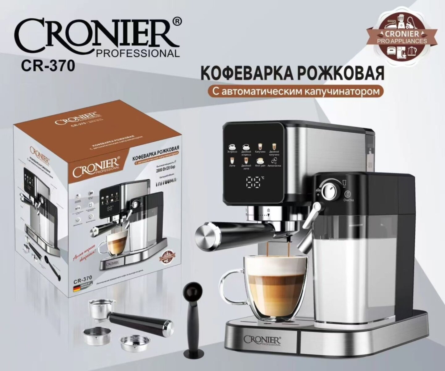 Кофеварка Электрическая CRONIER CR-370 / Кофемашина рожковая с капучинатором, 1 л: сравнение цен, характеристики, фото, актуальное наличие и цены.