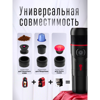 Универсальная портативная кофеварка, которая позволит вам наслаждаться вашим любимым кофе в любое время и в любом месте. Эта кофеварка подходит для использования с капсулами Dolce Gusto, капсулами Nespresso, а также обычным кофейным помолом для эспрессо, что делает ее универсальным решением для настоящих кофеманов. В комплекте вы найдете три кабеля, что обеспечивает гибкость использования в различных условиях: сетевой кабель на 220В для использования дома на кухне, в качестве домашней кофемашины, USB-кабель позволит использовать кофеварку от переносного зарядника аккумулятора где бы вы не находились, а кабель для автомобильного прикуривателя на 12В отличный вариант для тех кому нужна автомобильная кофеварка: путешевственников, таксистов или дальнобойщиков.