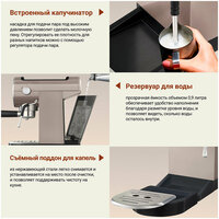 Прозрачный резервуар для воды объемом 0,9 литра обеспечивает удобство наполнения благодаря разметке уровня воды, и позволяет видеть, сколько воды осталось внутри. В случае необходимости контейнер легко снимается для очистки.