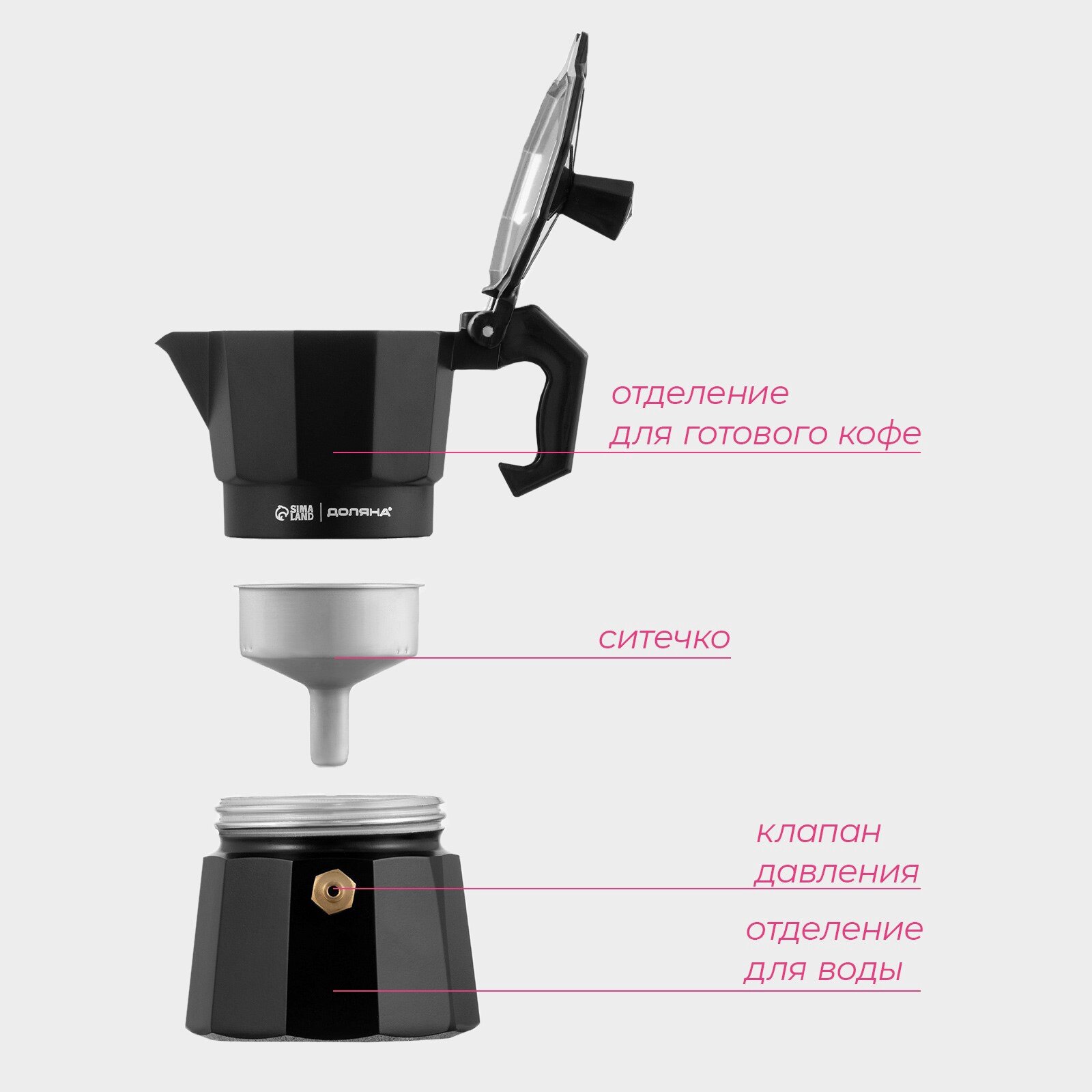Кофеварка гейзерная Доляна Alum black, на 1 чашку, 50 мл, алюминий, чёрная: сравнение цен, характеристики, фото, актуальное наличие и цены.