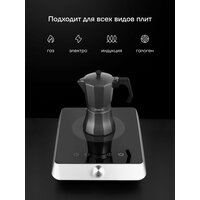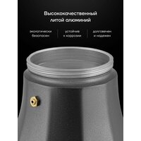 Гейзерная кофеварка от Polaris позволяет приготовить идеальный ароматный кофе прямо у себя дома. С помощью кофеварки вы сможете насладиться настоящим кофейным ароматом и получить богатый вкус напитка, полностью соответствующий вашим предпочтениям и желаниям. Кофеварка обеспечивает идеальный нагрев и распределение тепла. Благодаря использованию технологии 360° TURBO INDUCTION, кофеварка Polaris гарантирует максимальную скорость нагрева и полную совместимость со всеми типами плит – индукционной, газовой стеклокерамической, электрической. Гейзерная кофеварка изготовлена из литого алюминия, полный объем посуды 500 мл. Объем готового напитка составляет 450 мл, что позволяет приготовить 6 порций крепкого и насыщенного кофе всего за пять минут. Эргономичная бакелитовая ручка с покрытием Soft Touch делает использование гейзерной кофеварки еще более комфортным и безопасным. Она обеспечивает удобный захват и предотвращает возможность ожогов при приготовлении и сервировке кофе. Если вы пользуетесь индукционной плитой, обратите внимание на инструкцию к вашей плите и узнайте минимально допустимый диаметр дна посуды для каждой конфорки. Так вы будете уверены в том, что наша гейзерная кофеварка идеально подойдет для вашей индукционной плиты. Диаметр дна посуды указан в характеристиках. Гейзерная кофеварка - это кухонная посуда для любителей настоящего и вкусного кофе. Приобретите гейзерную кофеварку Polaris и наслаждайтесь свежезаваренным кофе в любое время дня и в любом месте!