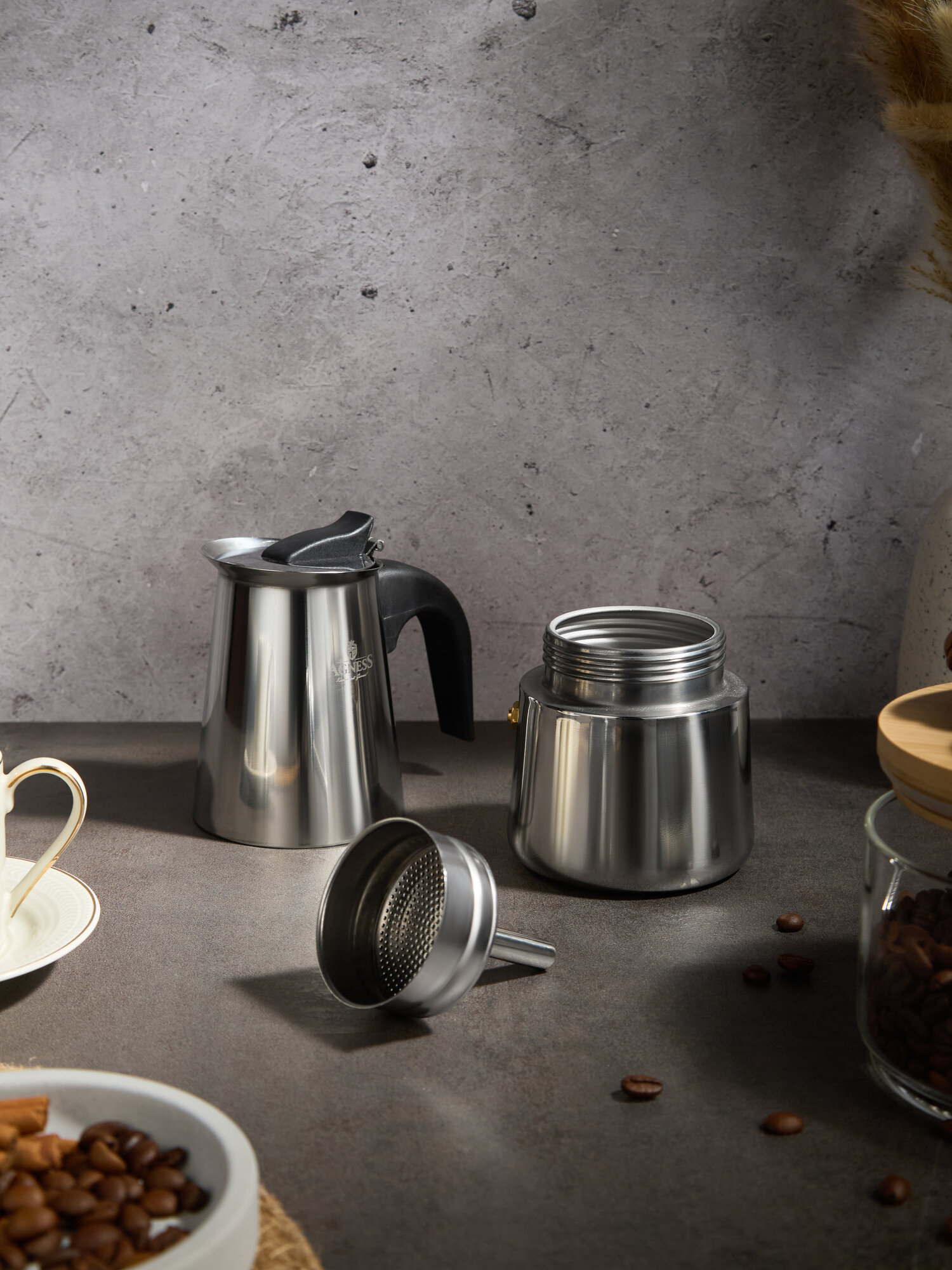 Кофеварка гейзерная на 4 чашки Agness «Монблан» для всех видов плит, 200 мл: сравнение цен, характеристики, фото, актуальное наличие и цены.