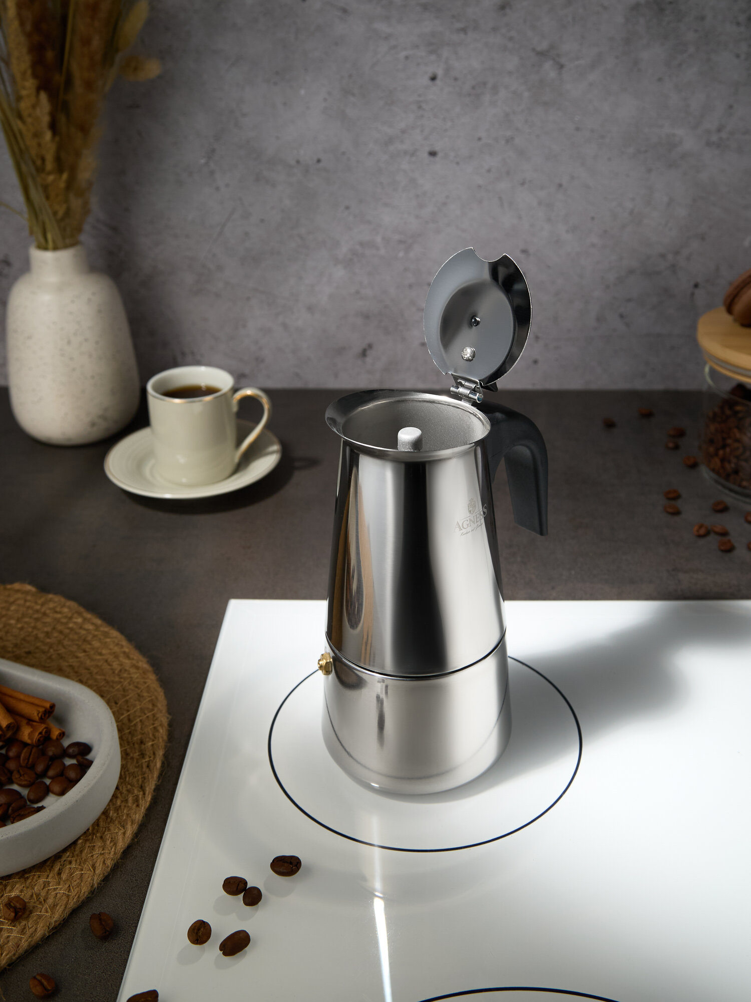 Купить Кофеварка гейзерная на 4 чашки Agness «Монблан» для всех видов плит, 200 мл с доставкой по всей России.