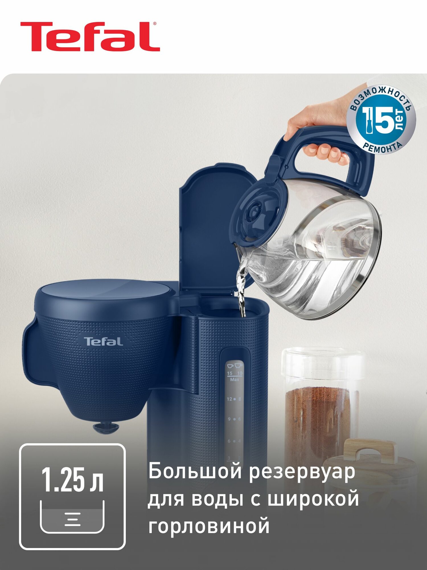 Вы сможете наслаждаться кофе в любой момент благодаря умной паузе портативной кофеварки Тефаль и наливать напиток не дожидаясь окончания процесса приготовления. Кофейник устройства имеет объем 1,25 л, что идеально подойдет для того, чтобы собрать большую компанию друзей. А функция поддержания температуры электрокофеварки поможет сохранить кофе горячим в течение 30 минут после заваривания.