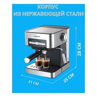 Кофеварка, кофемашина рожковая Sokany, автоподогрев, 1050 Вт, 20 бар