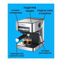 Кофеварка, кофемашина рожковая Sokany, автоподогрев, 1050 Вт, 15 бар
