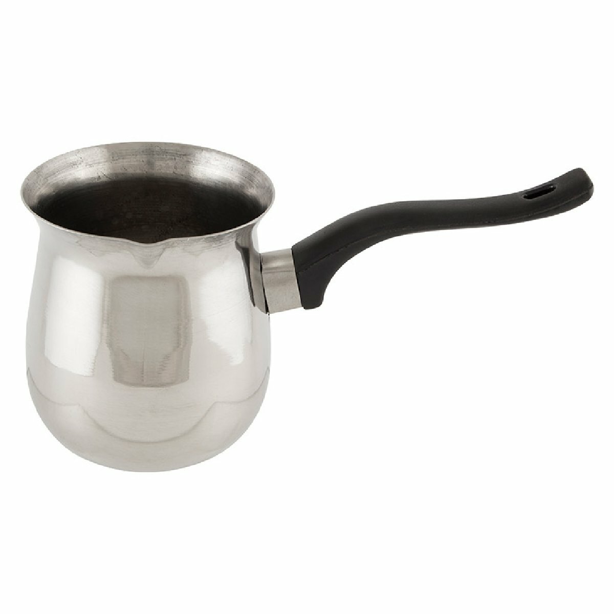 стальная, объем 850мл, материал нержавеющая сталь, ручка бакелит, толщина металла 0,9мм, упаковка - стикер, полиэтиленовый пакет, не подходит для индукции и стеклокерамики, подходит только для газовых и электрических плит, не рекомендуется мыть в посудомоечной машине