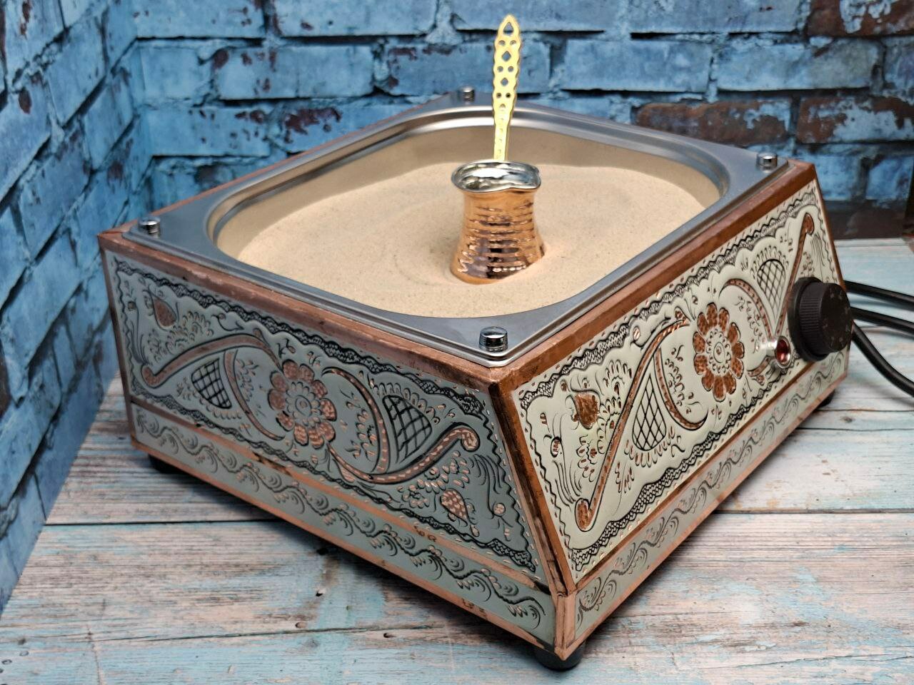 Кофеварка на песке медная, с росписью (белая). Турция. 36*34 см. На 6 турок. Ручная работа.: сравнение цен, характеристики, фото, актуальное наличие и цены.