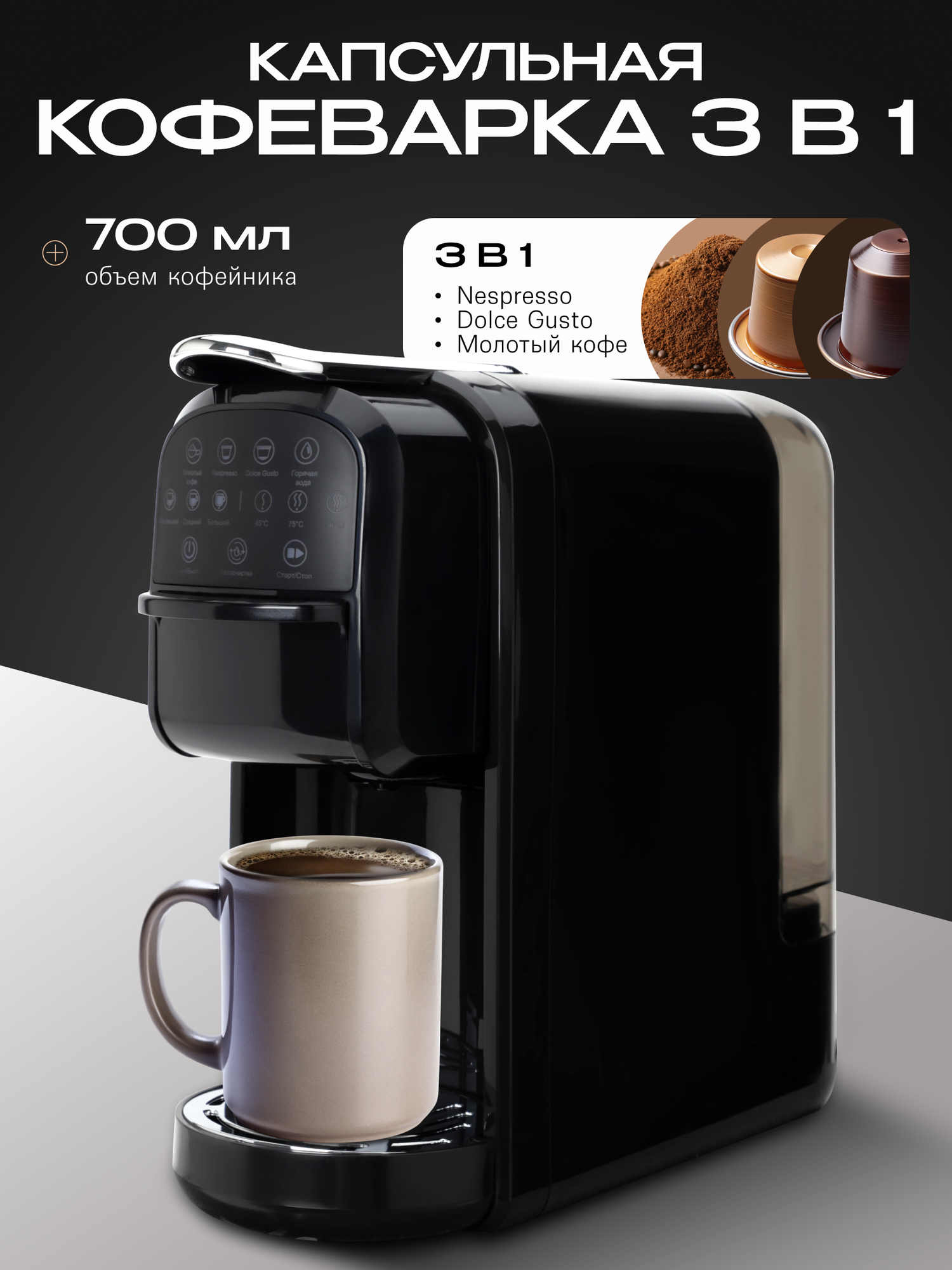 Купить Капсульная кофеварка 3 в 1, объем 700 мл, мощность 1400 Вт, черная с доставкой по всей России. Капсульная кофеварка 3 в 1, объем 700 мл, мощность 1400 Вт, черная: сравнение цен, характеристики, фото, актуальное наличие и цены.