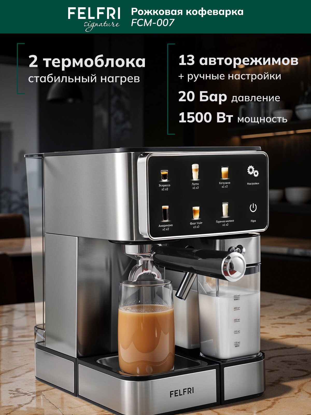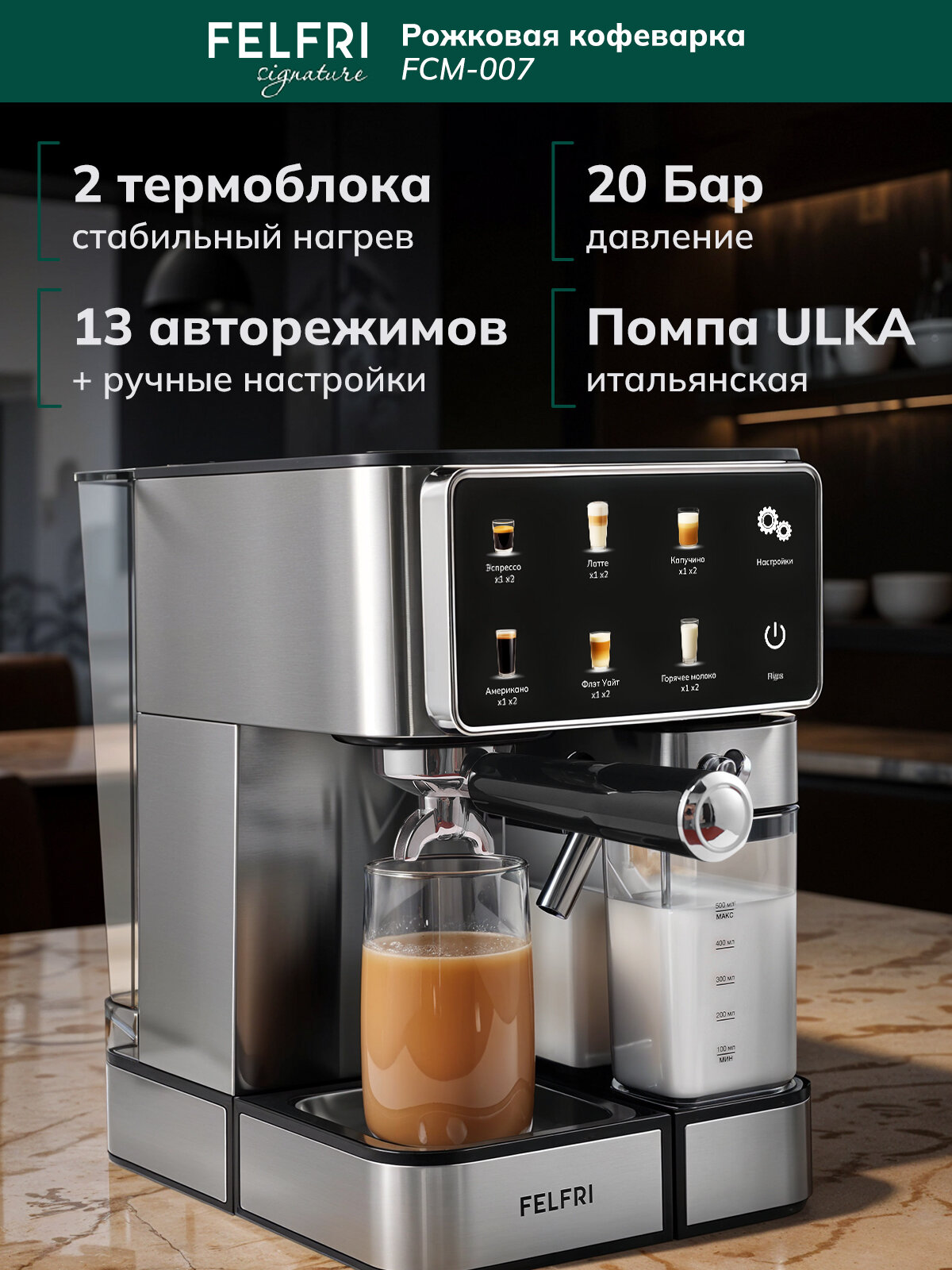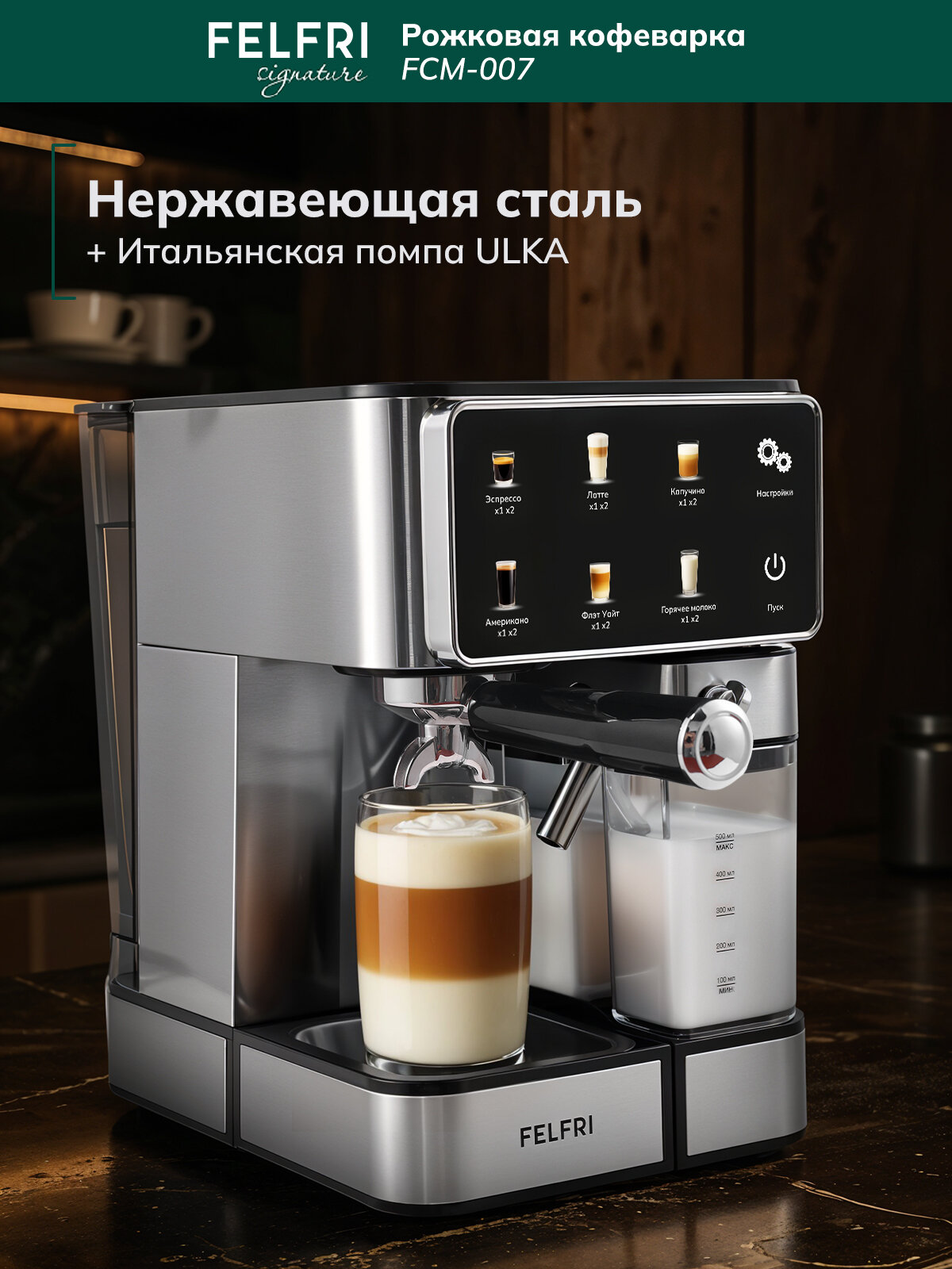 Кофеварка рожковая FELFRI FCM-007, с автоматическим капучинатором, автоматическая декальцинация: сравнение цен, характеристики, фото, актуальное наличие и цены.