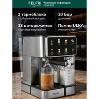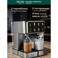 Купить Кофеварка рожковая FELFRI FCM-007, с автоматическим капучинатором, автоматическая декальцинация с доставкой по всей России.