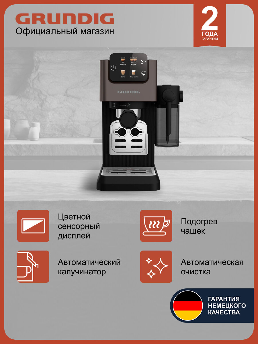 Кофеварка рожковая Grundig KSM 5330 с автоматическим капучинатором, 2 чашки, черный: сравнение цен, характеристики, фото, актуальное наличие и цены.