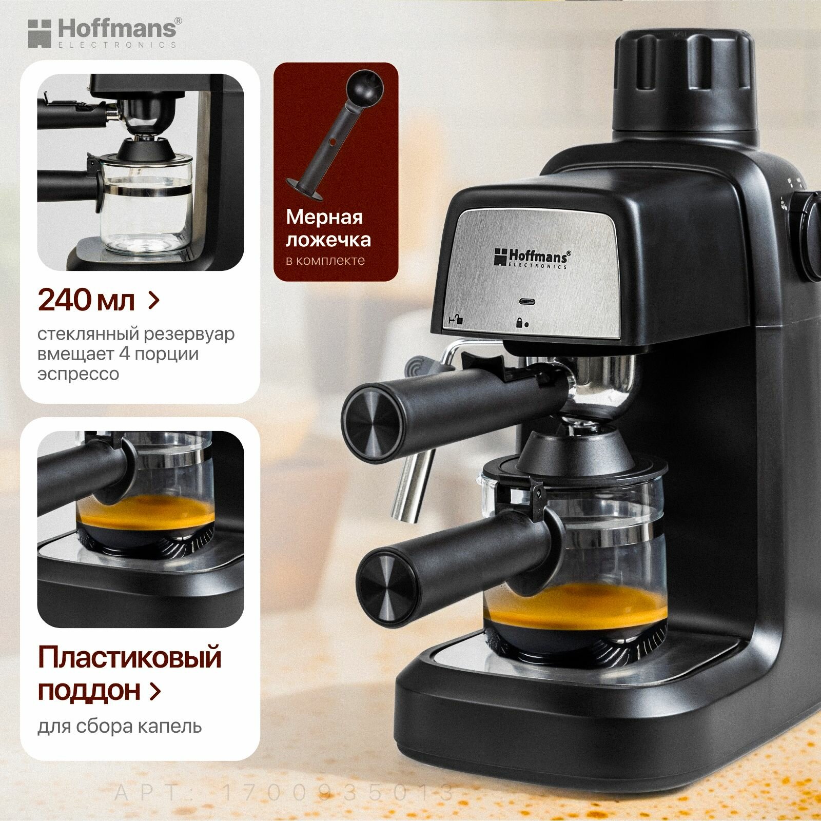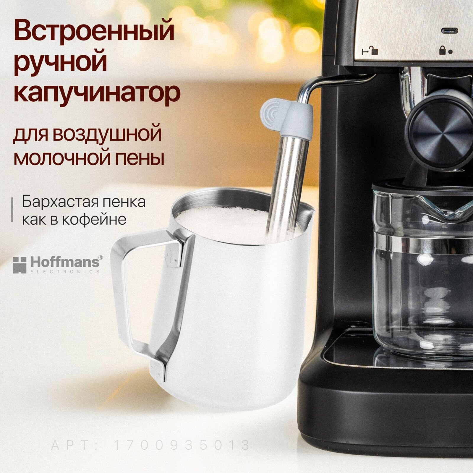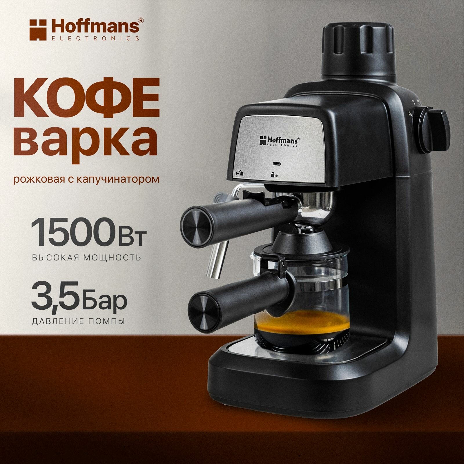 Купить Кофеварка рожковая, кофемашина Hoffmans полуавтоматическая, электрическая с капучинатором с доставкой по всей России.