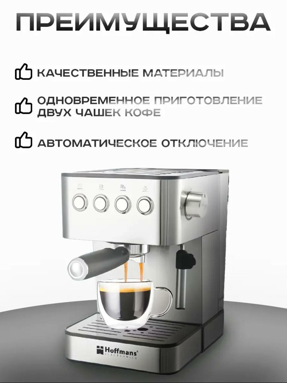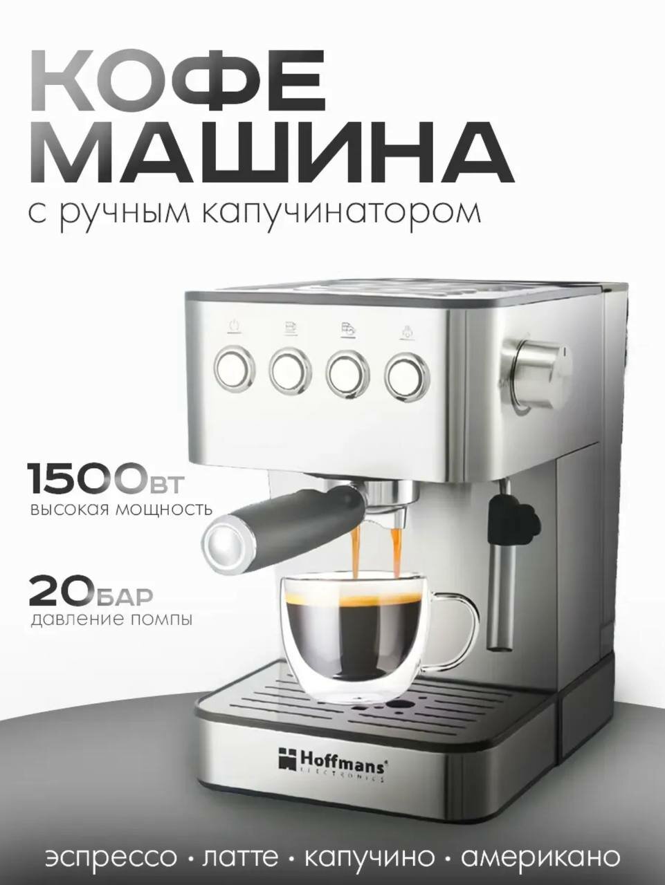 Купить Кофеварка рожковая, кофемашина Hoffmans полуавтоматическая, электрическая с капучинатором HM-685 с доставкой по всей России.