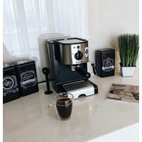 тип: рожковая, тип используемого кофе: молотый, тип устройства: кофеварка, приготовление капучино: ручное, тип напитка: капучино, эспрессо, американо, давление помпы: 15 бар, тип управления: механическое, объем: 1.25 л, настройки: объем порции горячей воды, крепость кофе, дополнительные функции: автоматическая декальцинация, одновременное приготовление двух чашек, подача горячей воды, подача горячего молока, особенности конструкции: съемный лоток для сбора капель, индикатор уровня воды, индикатор включения, индикация работы