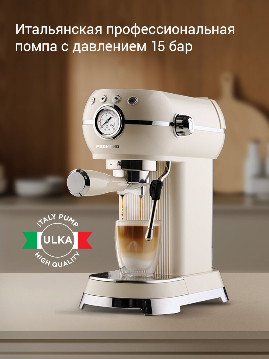 Кофеварка рожковая редмонд CM722, капучинатор, предсмачивание, подогрев чашек, автоочистка, термоблок, 15 бар, 1350 Вт: сравнение цен, характеристики, фото, актуальное наличие и цены.