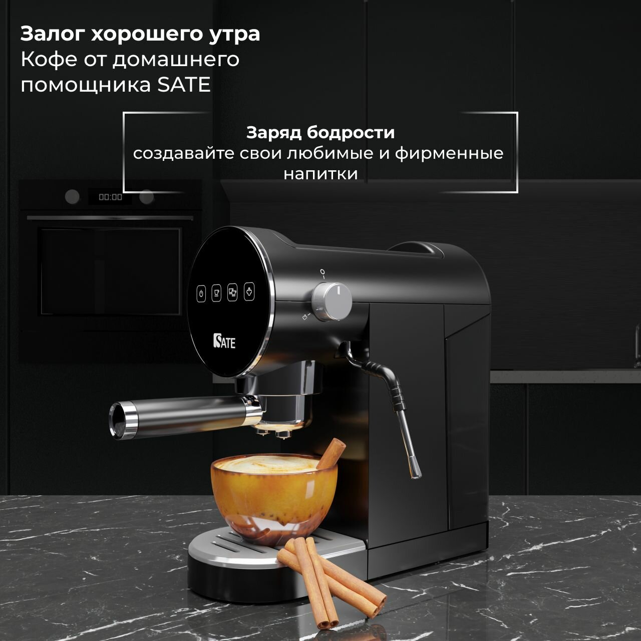 Купить Кофеварка рожковая SATE GT-100, черный, 2 фильтра в комплекте — single/double, программирование объема воды, автоотключение, 1150-1360 Вт -lj с доставкой по всей России.