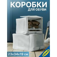 Купить Кофр для обуви 2 шт, 23х34х19 см, ткань в полоску/белый/серый IKEA HEMMAFIXARE хеммафиксаре с доставкой по всей России.
