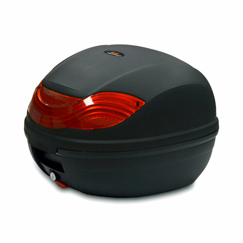 Кофр E-36 объёмом 32 литра вместит шлем формата ADV с козырьком, или трансформер Flip-back. У него аэродинамическая форма со скруглёнными углами. Он подойдёт для дорожных мотоциклов. На крышке сзади есть накладка из красного поликарбоната.