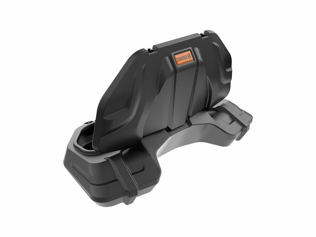 Кофр имеет уплотнение по контуру крышки и запирается на два металлических замка с ключом. Крышка открывается на угол 103 градуса и фиксируется, не соприкасаясь с элементами квадроцикла.