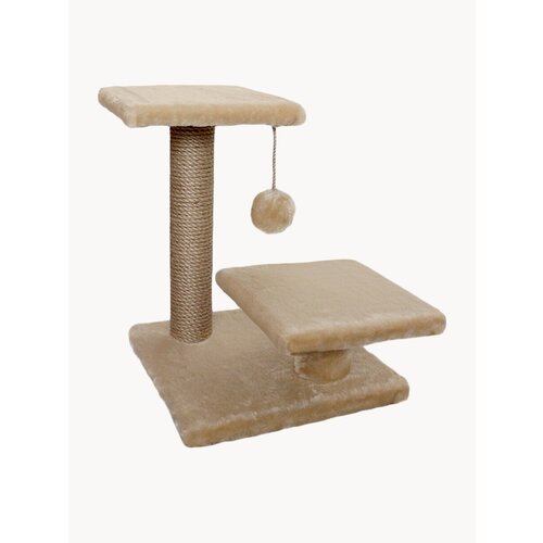 Когтеточка выполнена в бежевом цвете, что позволяет ей гармонично вписаться в любой интерьер. Материалы изделия - ДСП, фанера, картон, искусственный мех и джут - обеспечивают прочность и долговечность конструкции.