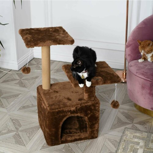 Когтеточка-Домик «БРИСИ», с игрушкой, для кошек, коричневая, 75x45x45 см