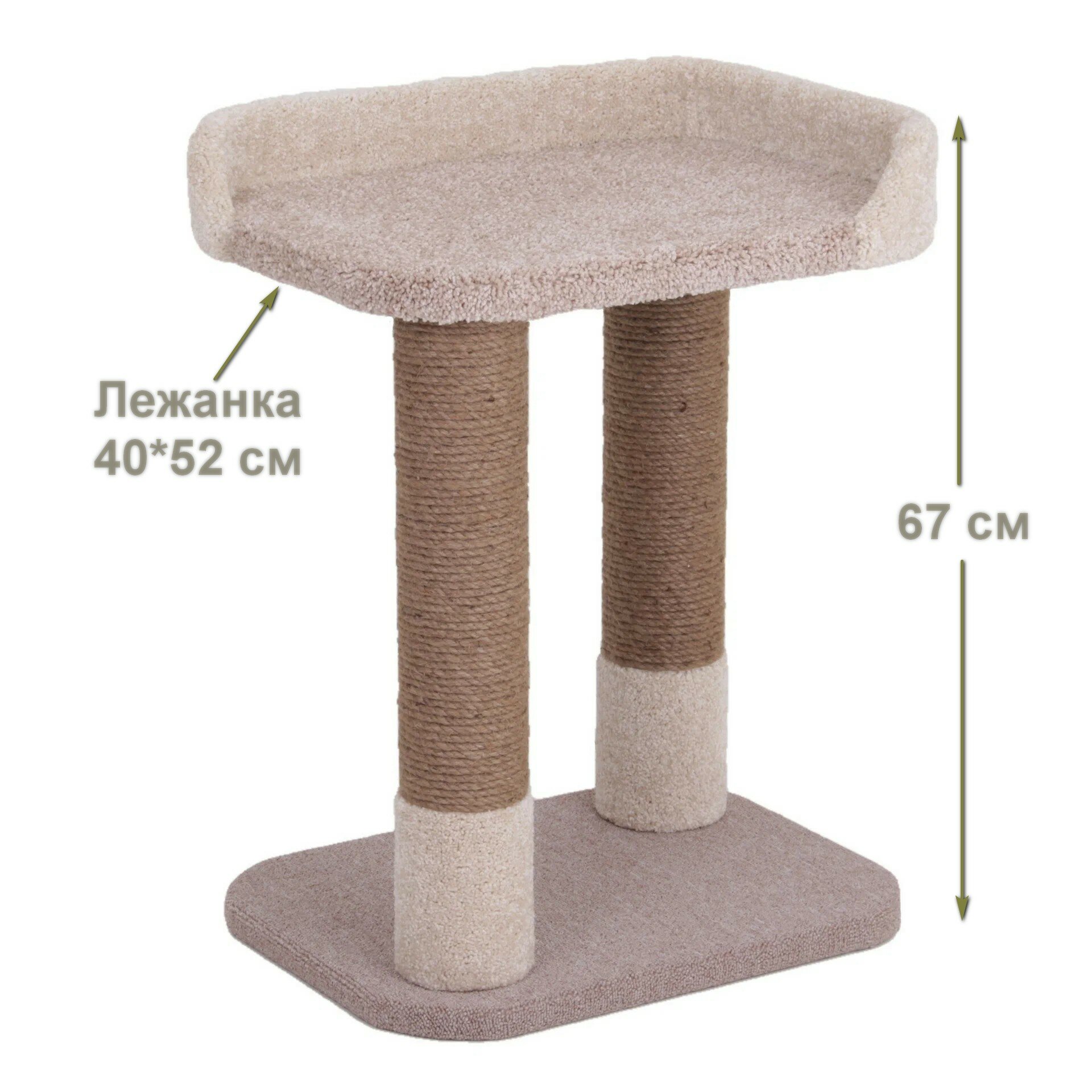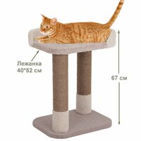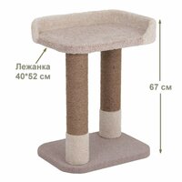 Размеры комплекса составляют 40*52*67 см, что позволяет ему занимать не большое пространство в помещении. Лежанка имеет размеры 40*52 см, а высота когтеточек составляет 50 см, а диаметр - 11 см.