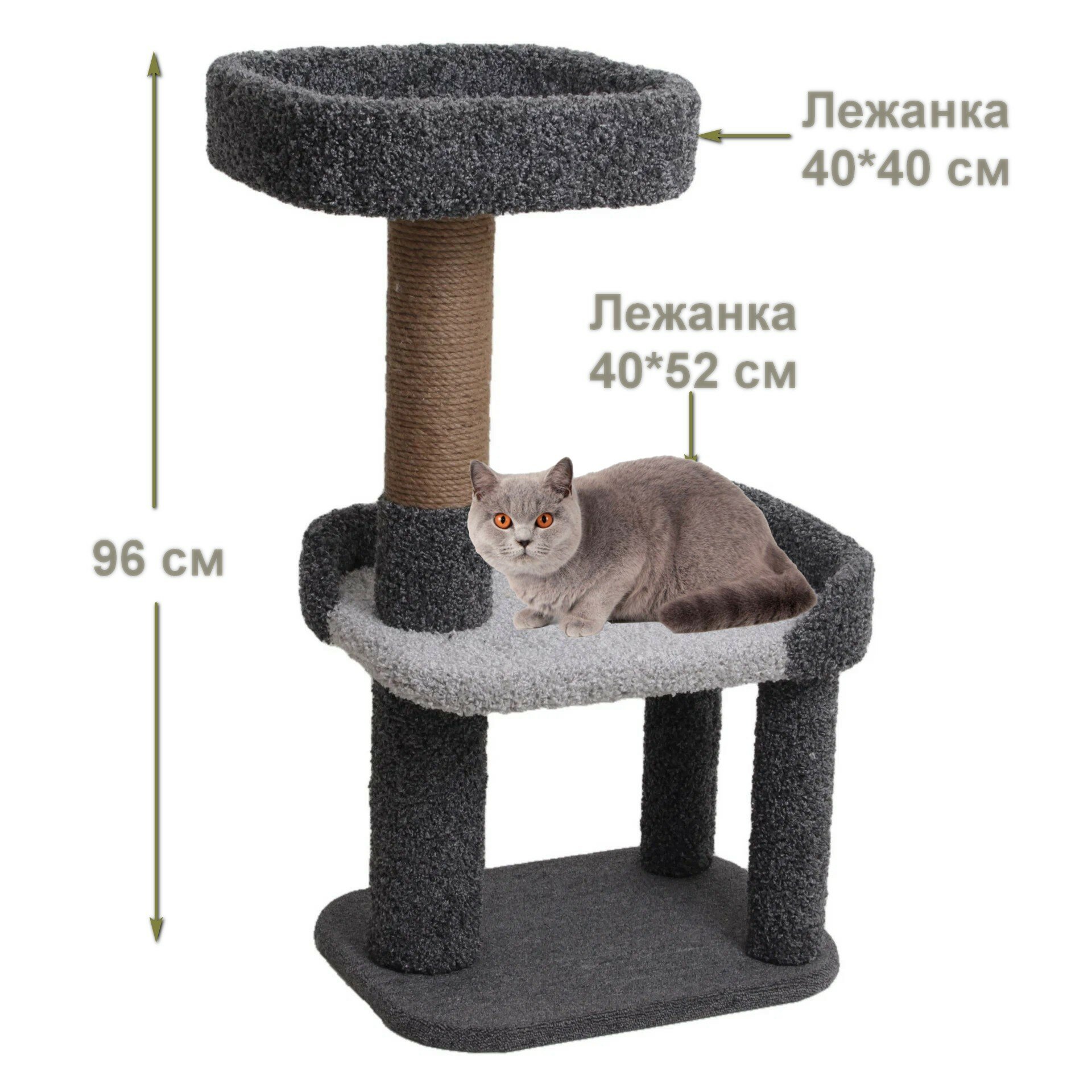 Когтеточка для кошек с лежанками «Етк Зоо» Комфорт 96, антрацит, ковролин, джут , 40*52*96 см: сравнение цен, характеристики, фото, актуальное наличие и цены.
