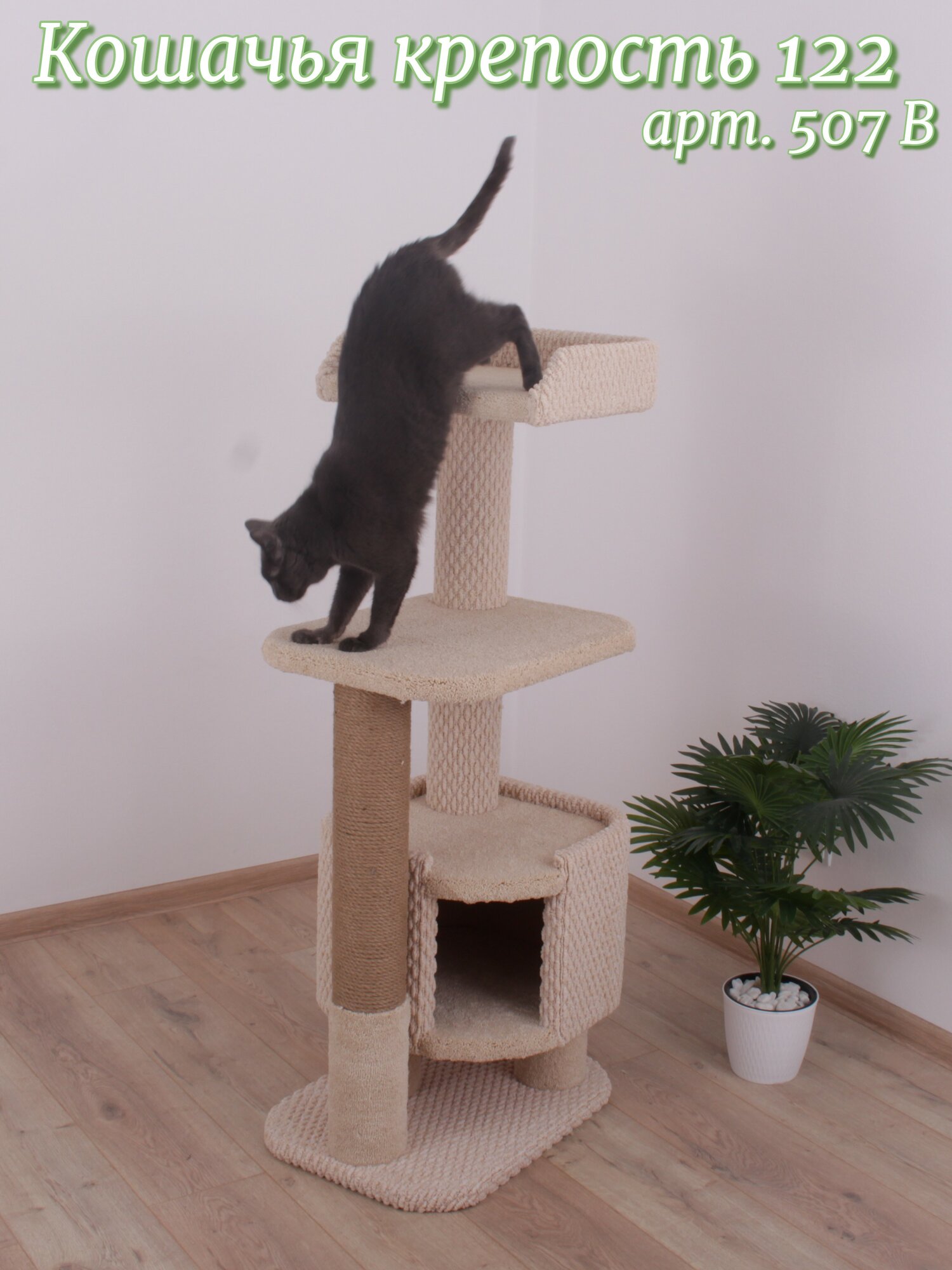 На комплексе "Етк Зоо" Кошачья крепость 122, спокойно может разместиться до 4 кошек. Это позволяет кошкам не только точить когти, но и отдыхать в свое удовольствие.